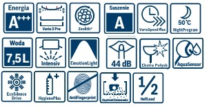 Vario Speed: Chương trình rút ngắn chu kỳ giặt và rửa đến 45 phút, đồng thời vẫn duy trì hiệu suất cao (AA).